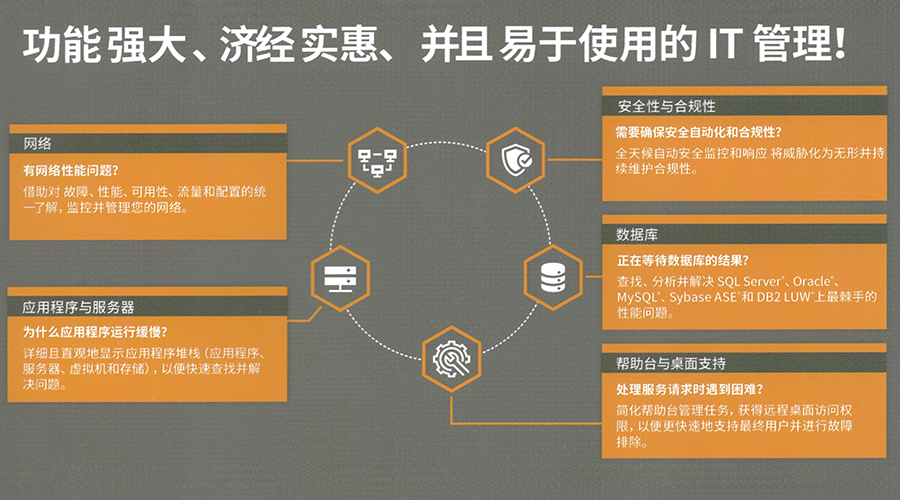 當前,IT環境對(duì)于業(yè)務越來(lái)越重要(yào),如(rú)何更好(hǎo)地(dì)對(duì)IT環境進行(xíng)監控、維護,≥如(rú)何減少(shǎo)IT故障的(de)發生(shēng),保證業(yè)務的(de)正常開(kāi)展,是(shì)非常現(xiàn)實的(de)問(wèn)題。是(shì)否有($yǒu)一(yī)個(gè)支持分(fēn)布式部署的(de)綜合IT環境監控解決方案,可(kě)用(yòng)于網絡性能(néng)監測、流量分(fēn)析、鏈路(lù☆)監控、配置管理(lǐ)、虛拟化(huà)監控、日(rì)志(zhì)監控、存儲與備份系統監控等IT的(de)多(duō)個(gè)方面?