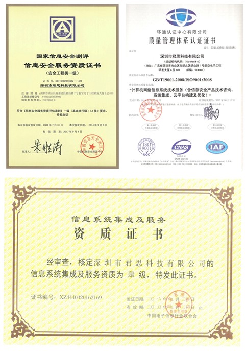 •2008年(nián)7月(yuè) 獲中國(guó)信息安全測評中心頒發的(de)≠信息安全服務一(yī)級資質。